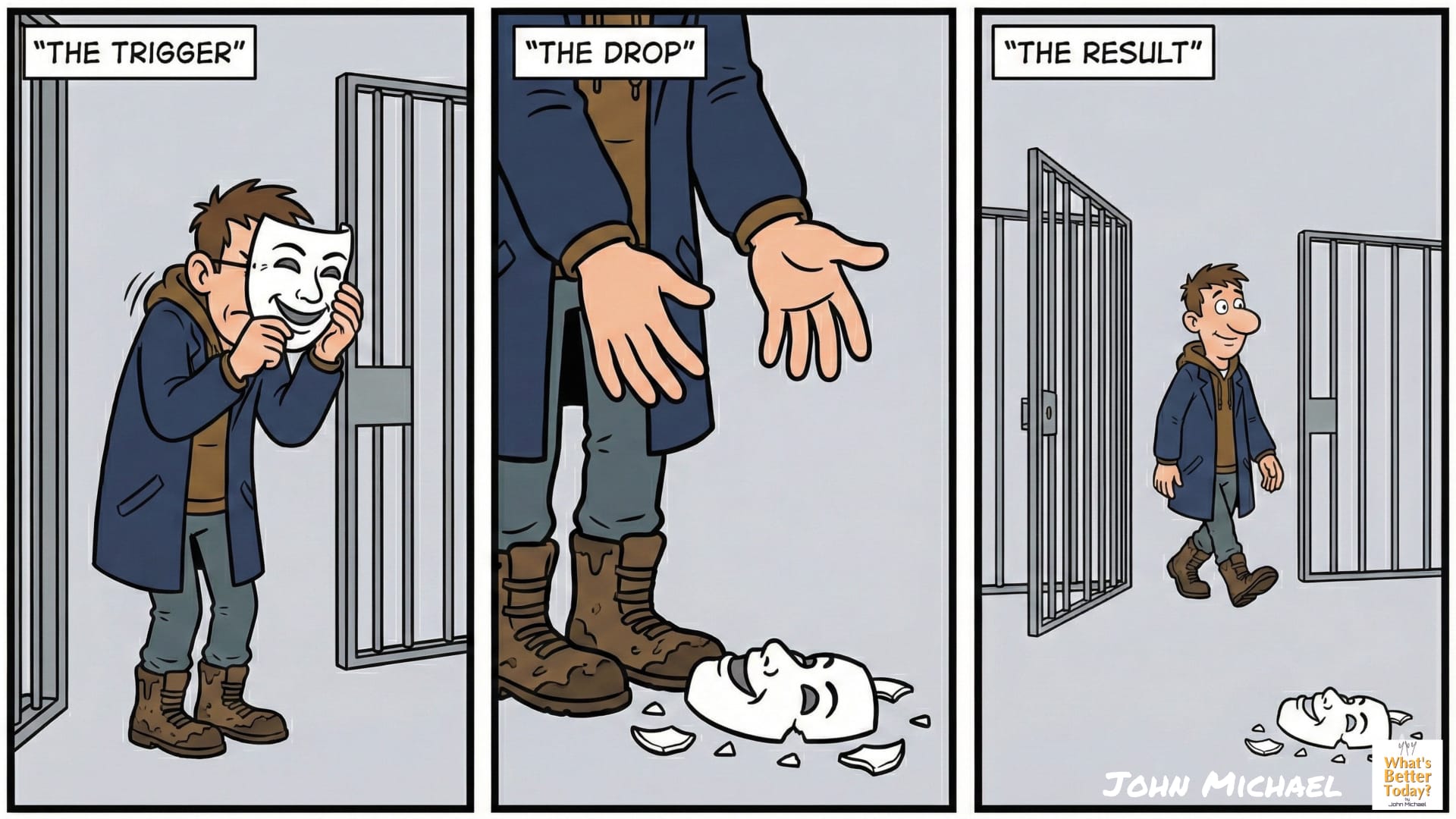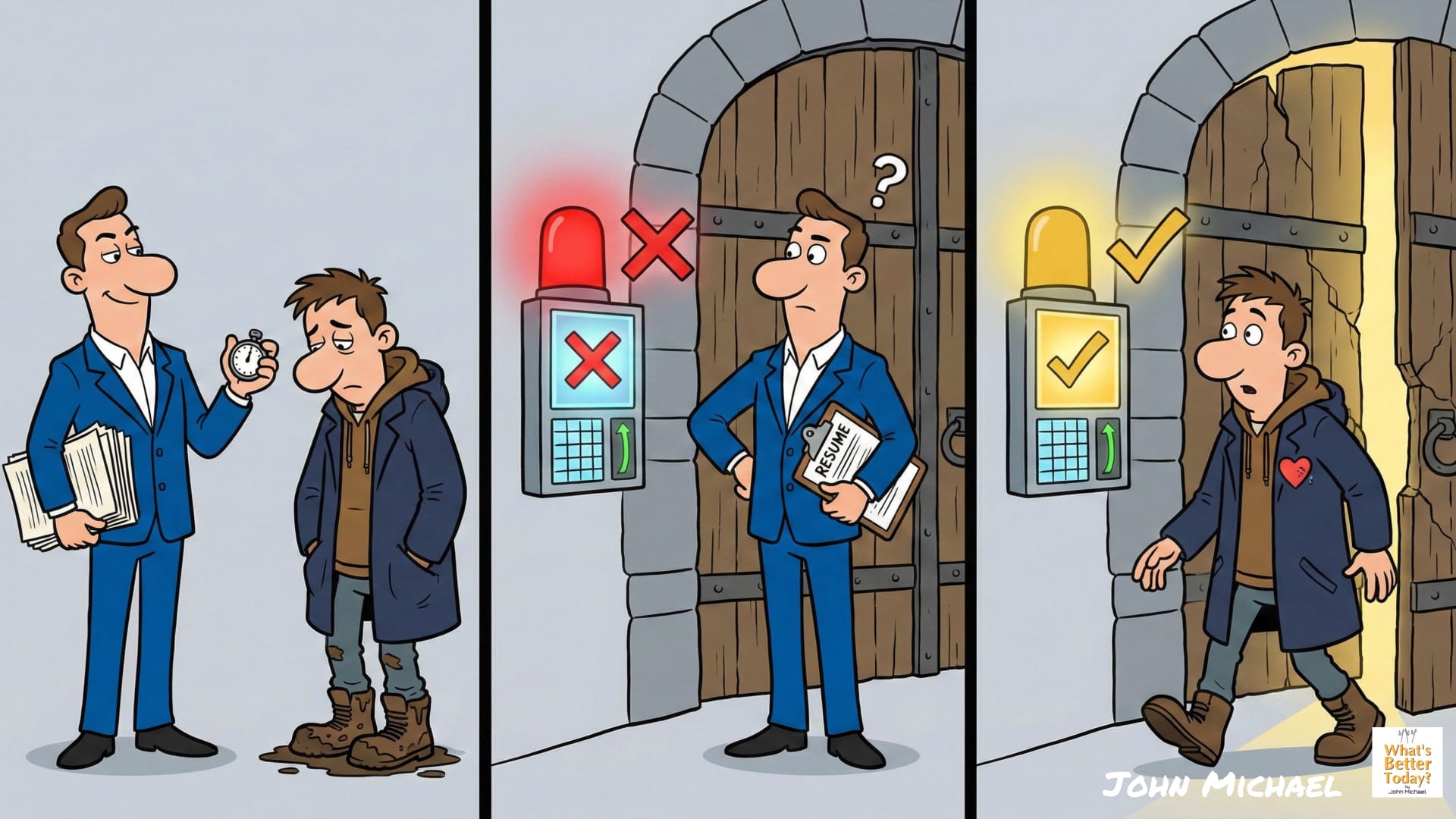You are standing at the threshold, hesitating. Your boots are muddy, your heart is bruised, and you feel entirely too "messy" for the pristine building in front of you. Beside you stands Victor. Victor is not mean; he is impressive. He is wearing a tailored suit, holding a clipboard, and checking his watch with practiced efficiency. He looks at your torn jeans and raises a polite, skeptical eyebrow. You feel the familiar urge to hide, to polish up, to fake it. You assume the door is locked for you and open for him. You assume you are the glitch.