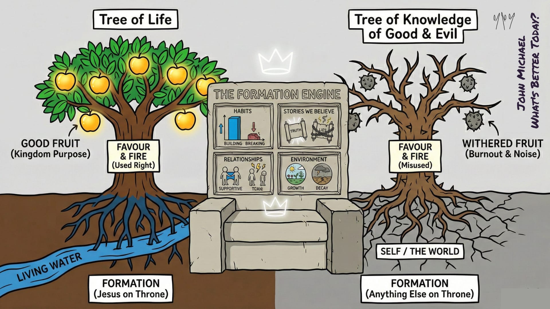1. THE FORMATION (The Root) This is the hidden work. It is the root system that feeds everything else. You are being formed 24/7 by six things: